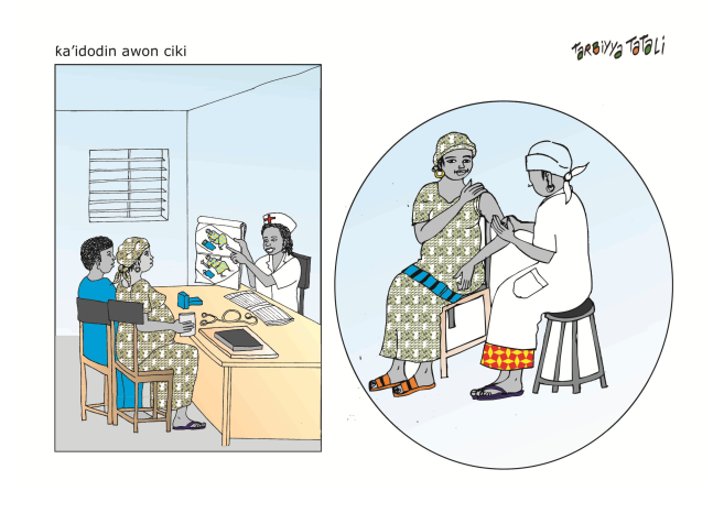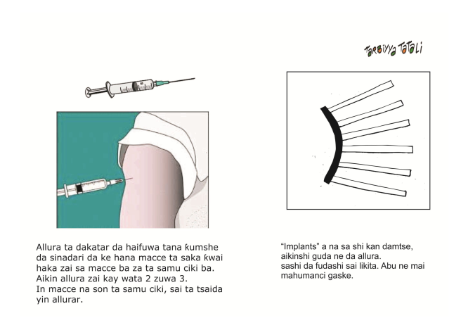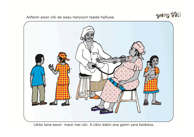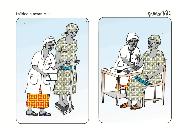 Au total, une boite à image composée de 27 pagivoltes illustre les principaux chapitres abordés lors des séances de formation, avec les légendes traduites en haoussa.